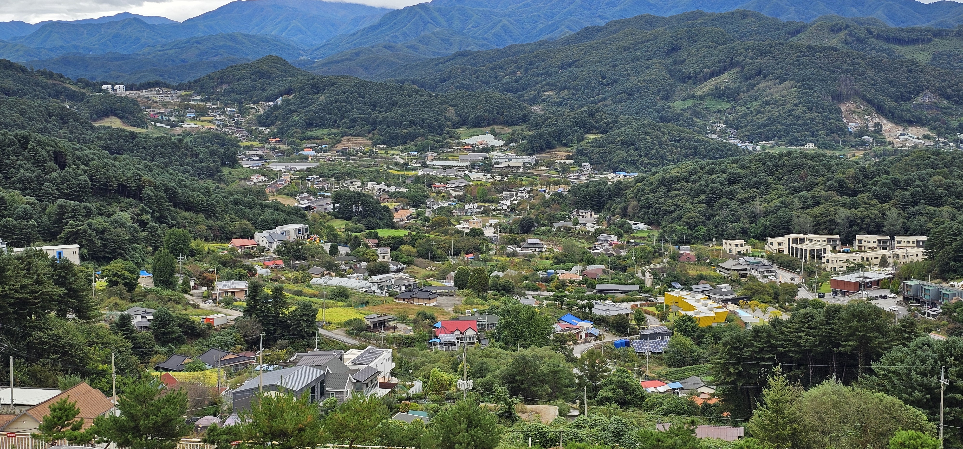 가평 축령산 줄기 정상에서 내려다보는 구름산 카페