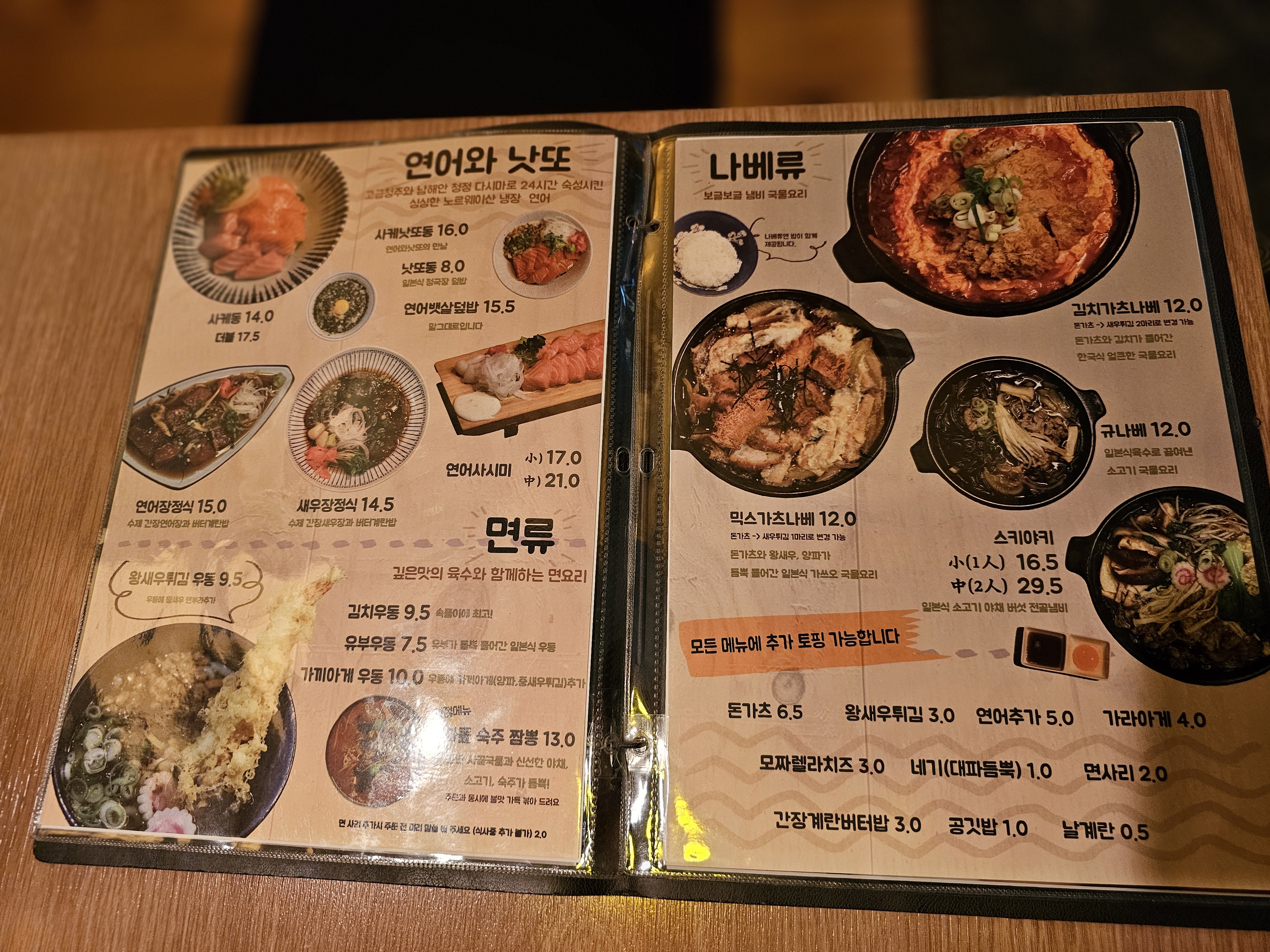 메뉴판.. 책자가 있는데 아까 밖에서 봤던 메뉴판을 좀 더 큰 그림이 올려진 책으로 된 메뉴판이 있다