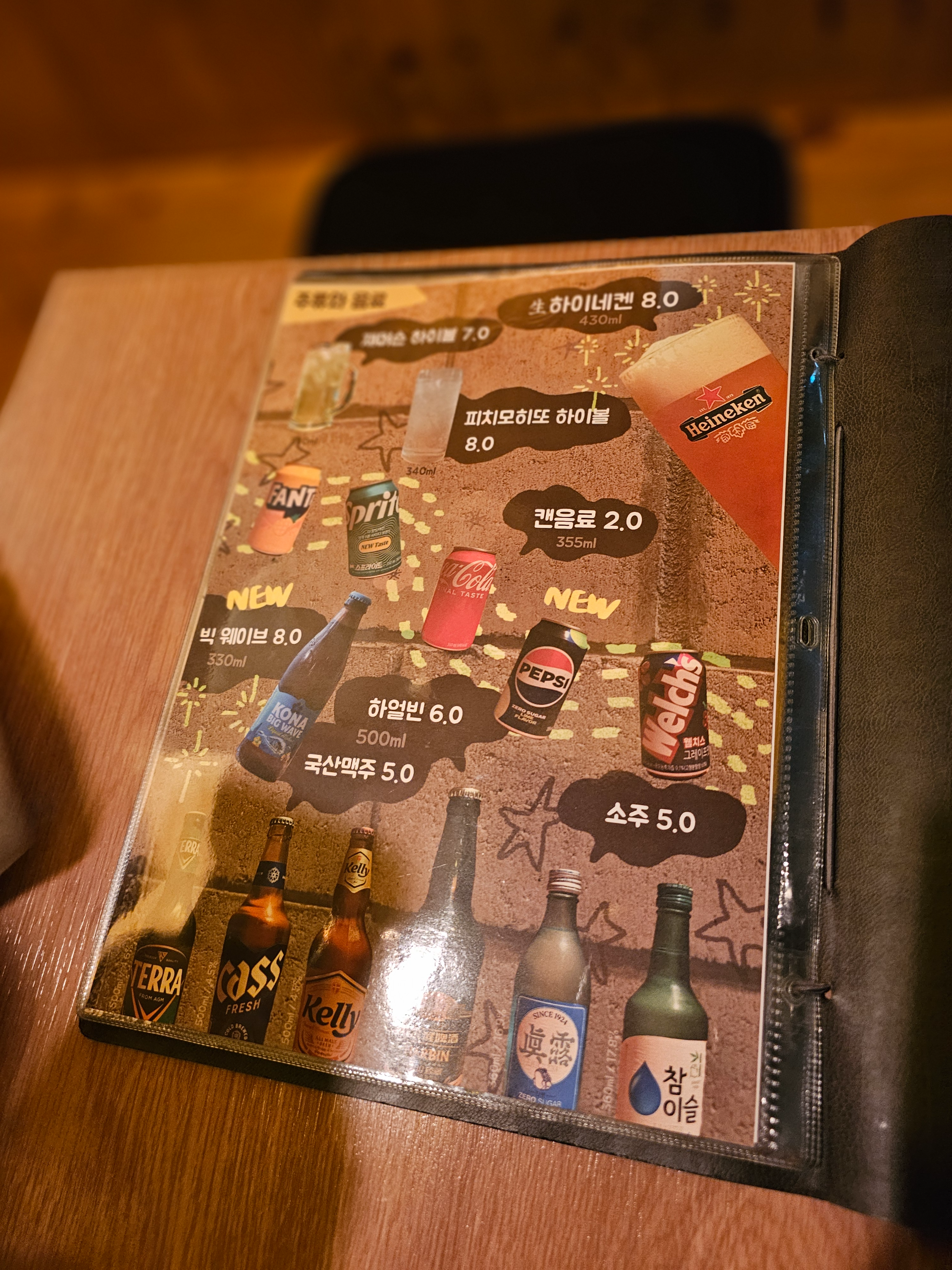 메뉴판.. 책자가 있는데 아까 밖에서 봤던 메뉴판을 좀 더 큰 그림이 올려진 책으로 된 메뉴판이 있다